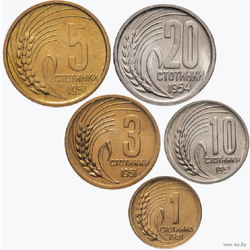 Болгария набор монет 1, 3, 5, 10, 20 стотинок, UNC. Предложите свою цену или обмен!