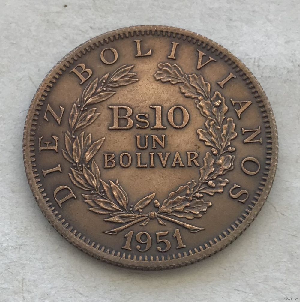 Боливия 10 боливиано 1951 Симон Боливар - один год чекана!