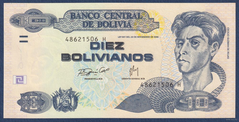 Боливия, 10 боливиано 1986 г., P-233 (H, художник Сесилио Гусман де Рохас), UNC