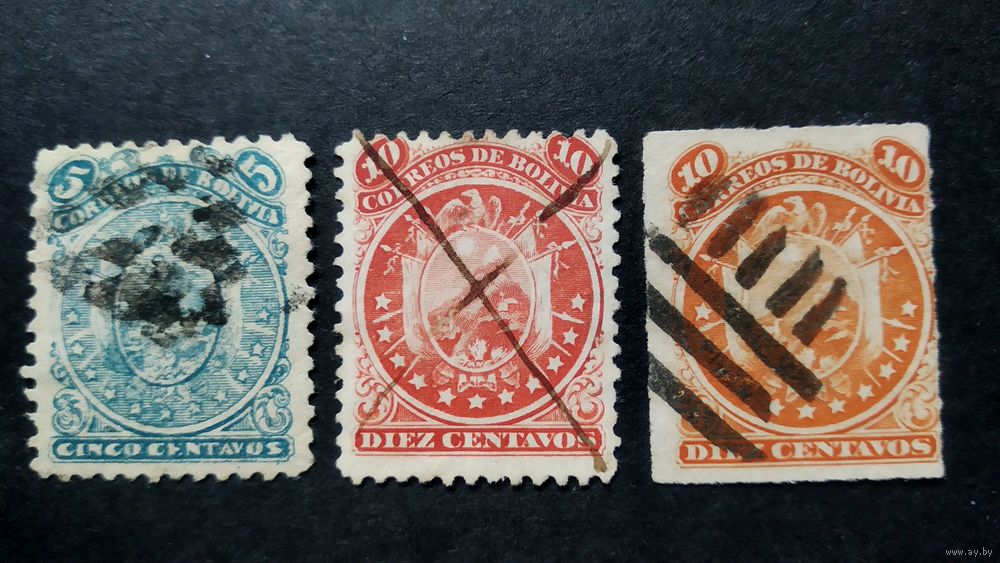Боливия\173ф\ 1871-1887- 1893. Герб в круге (11 звезд) кц24евр