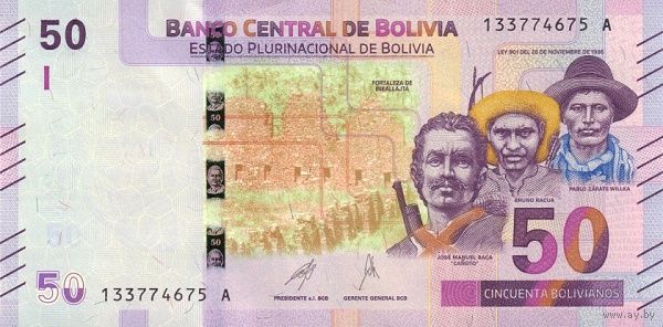 Боливия 50 боливиано образца 2019 годаUNC p250b