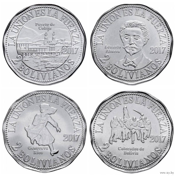 Боливия набор 2 боливиано 2017 полная серия 4 шт "Вторая Тихоокеанская война" UNC