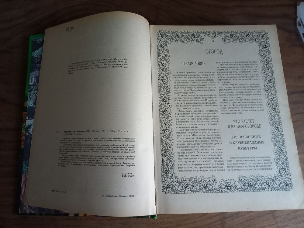 Книга большого формата "Большая книга дачника", 2003 год, издательство Минск Харвест. Содержит советы о размножении сортов, уход за культурами и другие полезные советы. Здесь содержатся рекомендации по агротехнике, выращивании овощей, о питании растений, способах защиты от вредителей и болезней, информация об обработке почвы, выборе семян, выращивании рассады. Также здесь вы найдете советы по сооружению русской бани,бани-сауны, походной бани и мини-сауны, технологии строительства погребов и колодцев.