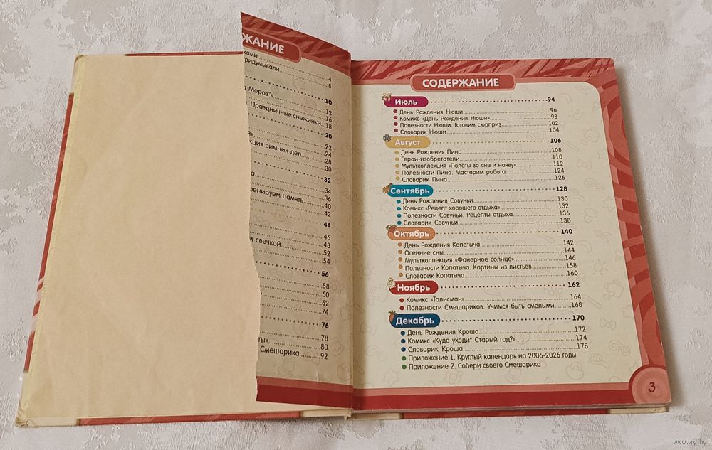 В компании со Смешариками скучать не придется. Новые красочные комиксы, шутливые стихотворения на каждый месяц года. Дни рождения любимых героев, веселые словарики от каждого из персонажей и круглый календарь на десять лет вперед.