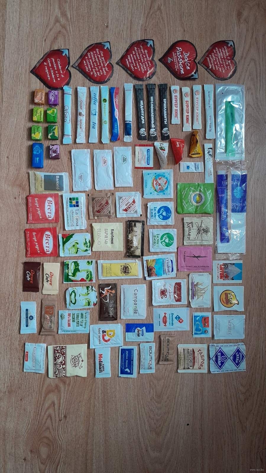 Большая коллекция сахара в пакетиках. Разные страны 156 штук без повторов.