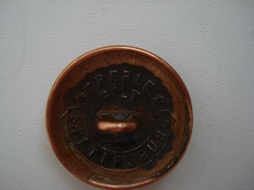 Диаметр пуговицы - 25 мм . На оборотной стороне пуговицы имеются надписи: TREBLE GILT (тройная позолота) St.PETERSBURG.