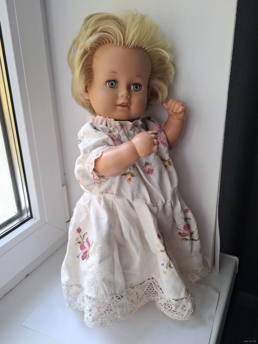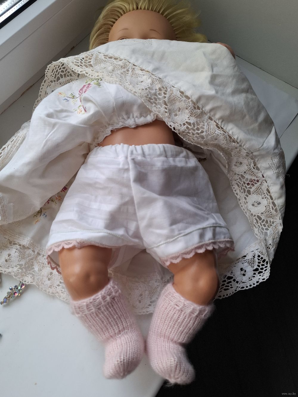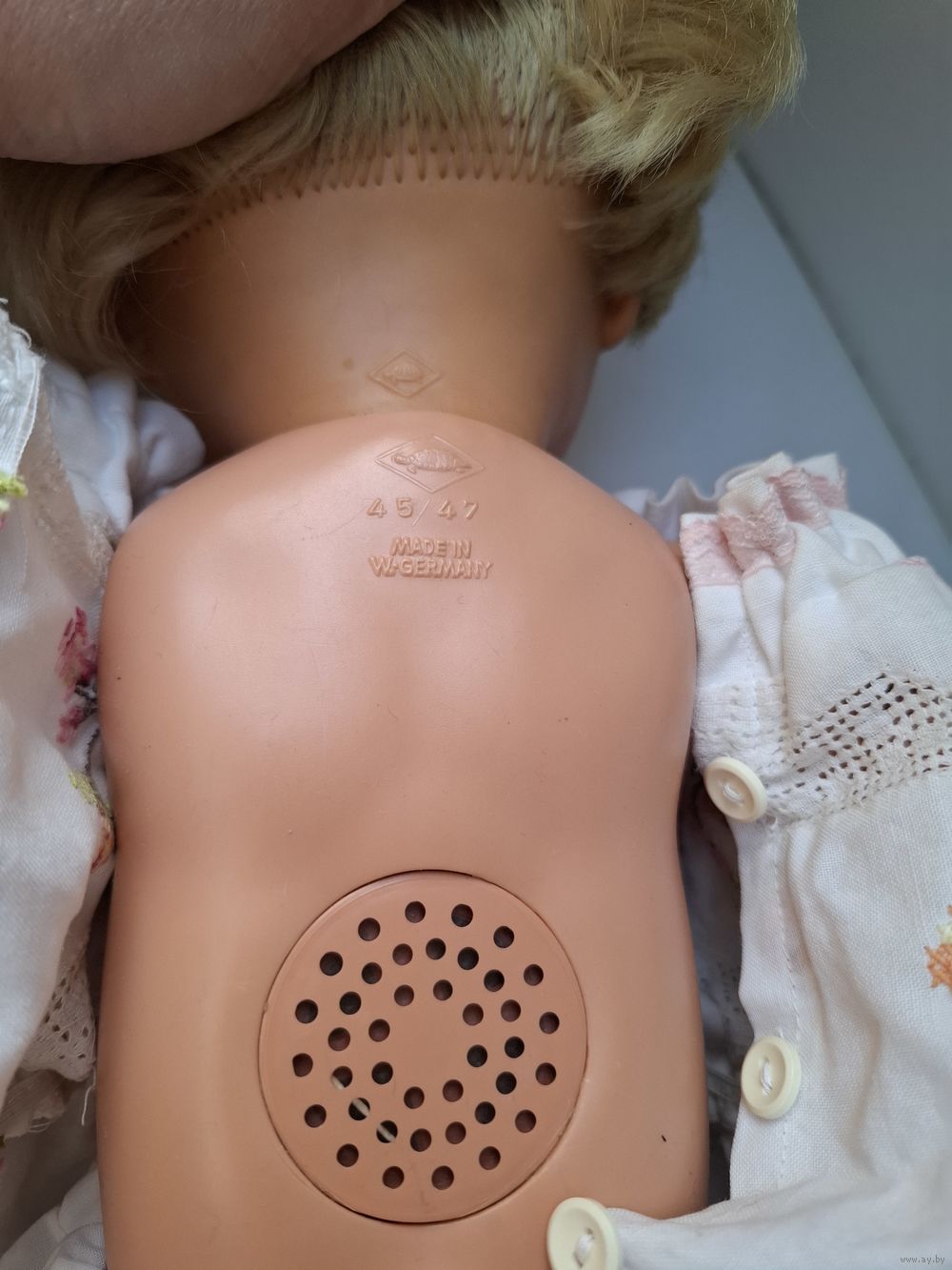 Сзади звуковой механизм. Кукла плачет. Издаёт звук при наклоне вперёд.