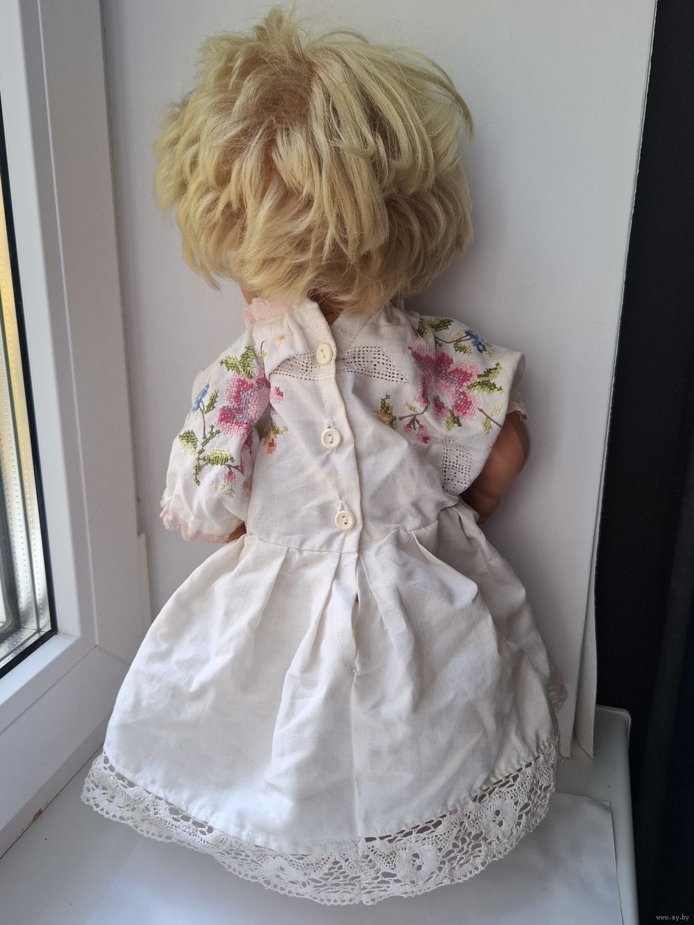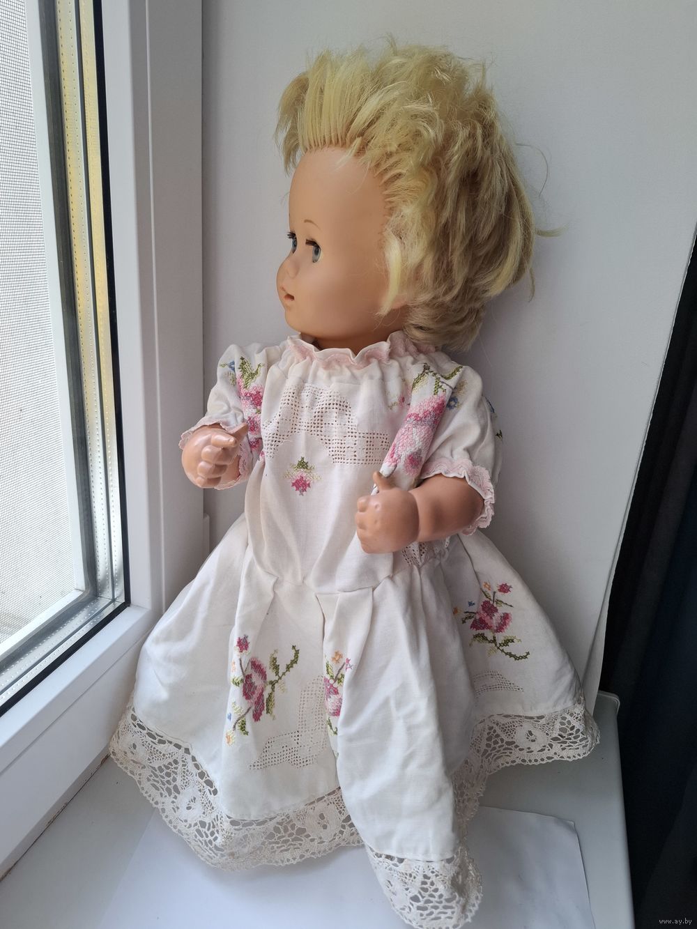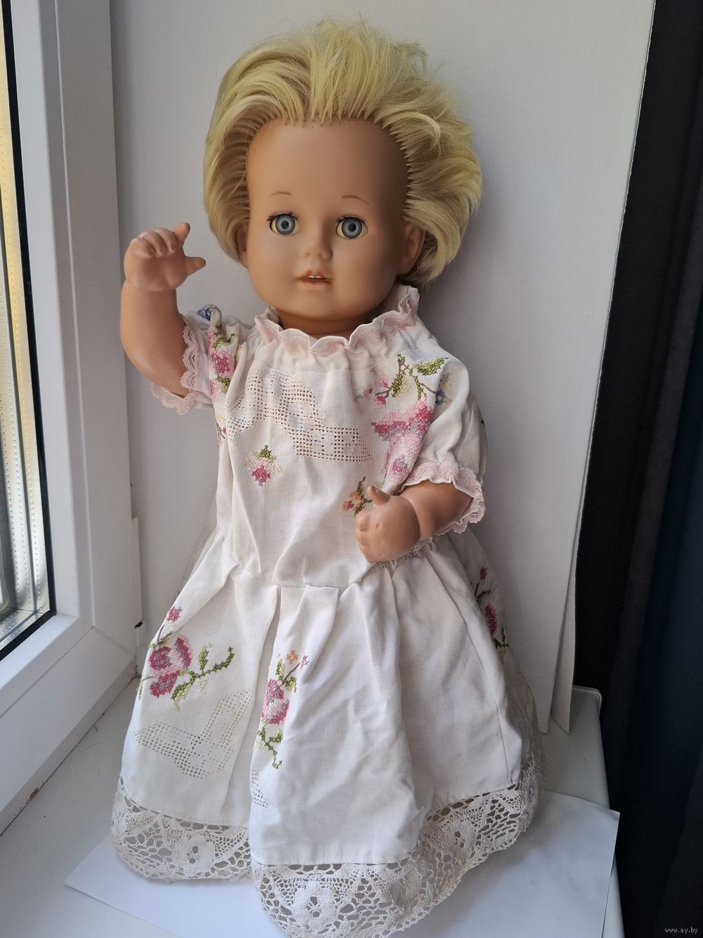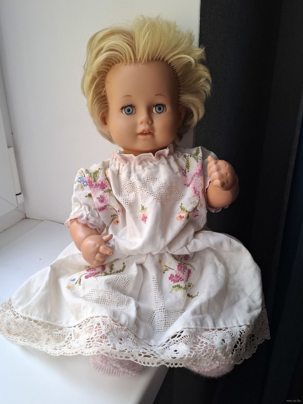 Сзади звуковой механизм. Кукла плачет. Издаёт звук при наклоне вперёд.