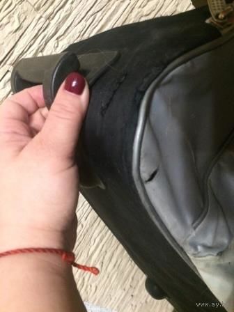 Большая спортивная сумка с выдвижной ручкой. Сумка очень большая и вместительная. Размер длина не меньше 60 см, ширина около 40 см. Сумка очень прочная, добротная. Единственное, необходимо вымыть, есть следы носки на ткани, но сумка целая.