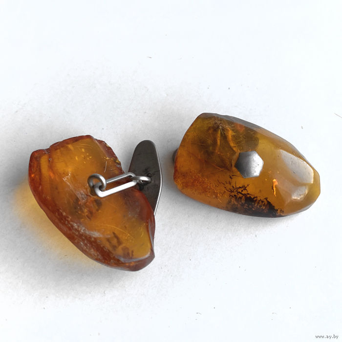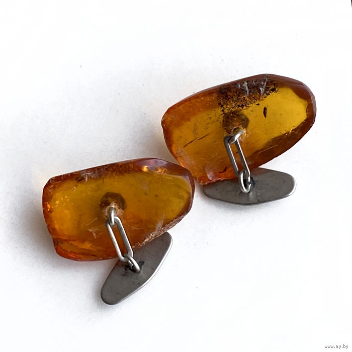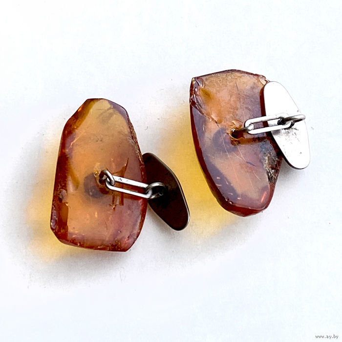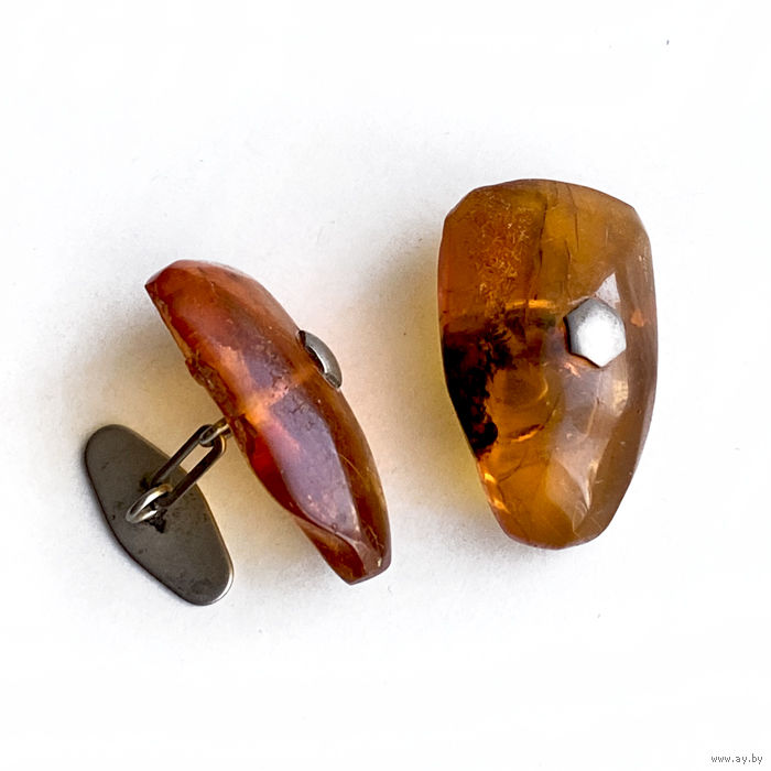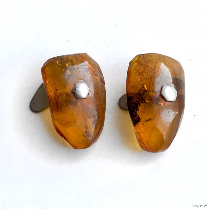 Большие запонки советского переода (1970-е) из янтаря - цельные камни 3х2 см. Состояние отличное.