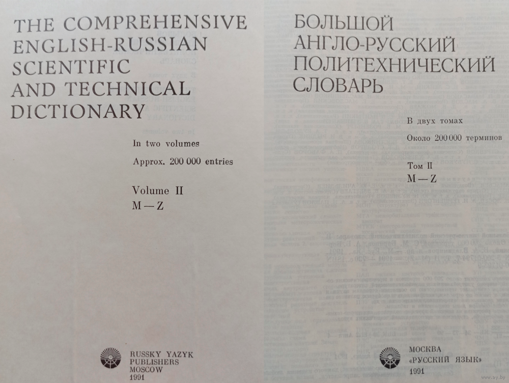 Большой англо-русский политехнический словарь. В 2-х томах. Около 200 000 терминов. Сост. Баринов С.М. и др. М. Русский язык 1991 г. 701 стр. + 720 стр. Твердый переплет, Энциклопедический формат