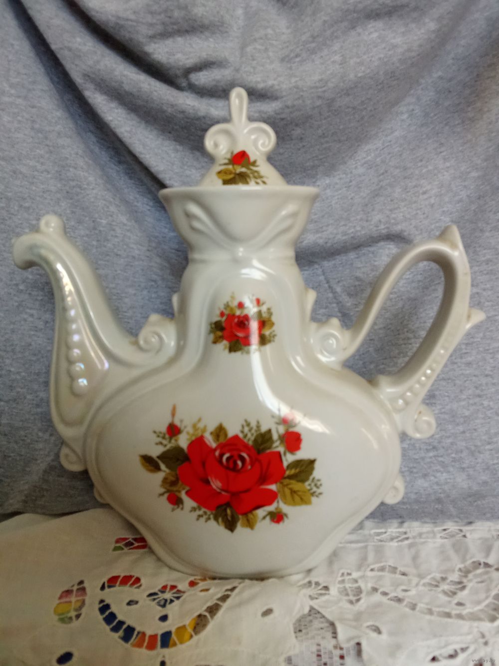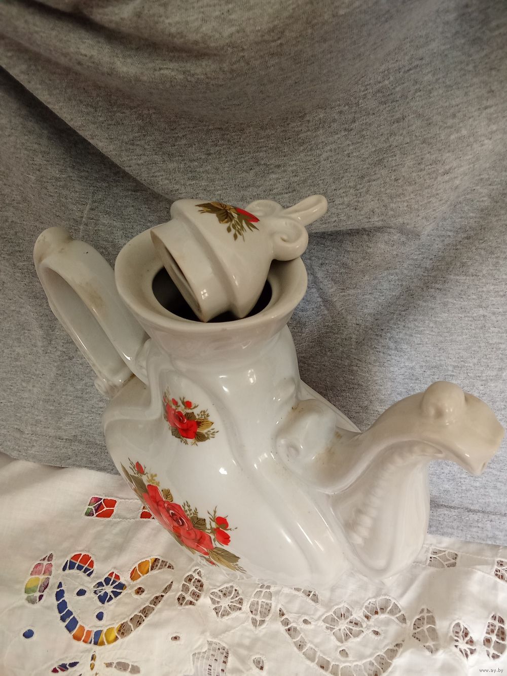 Большой чайник заварник, фарфор, Минский фарфоро-фаянсовый завод. Дефектов нет. Клеймо подзатерто, прослеживается на донышке под буквой Б. Состояние хорошее.