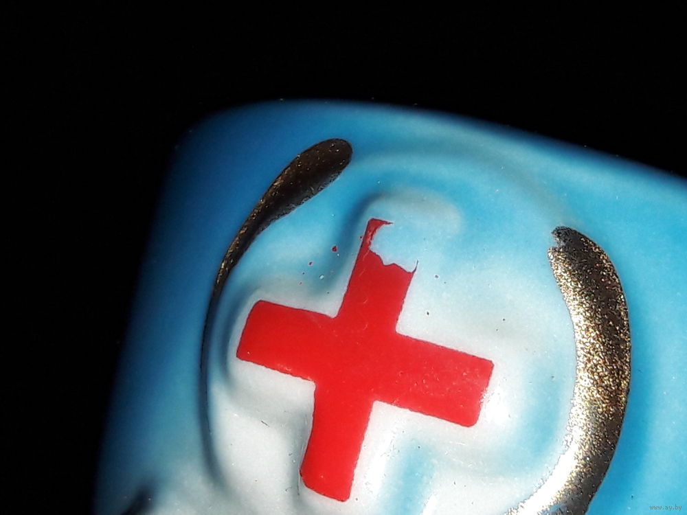 Из обнаруженных повреждений - небольшое отсутствие краски на кресте (фото 8) и малозаметный ~5мм. заводской дефект глазури (фото 9).