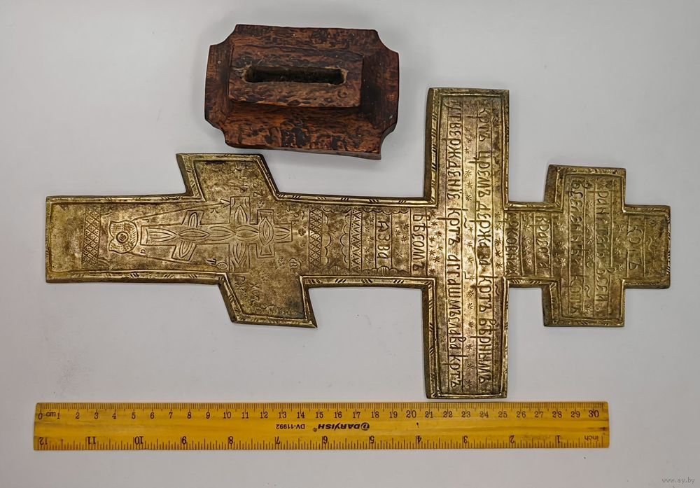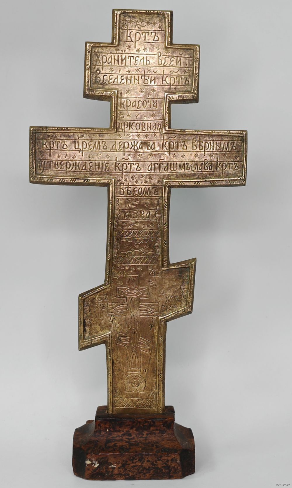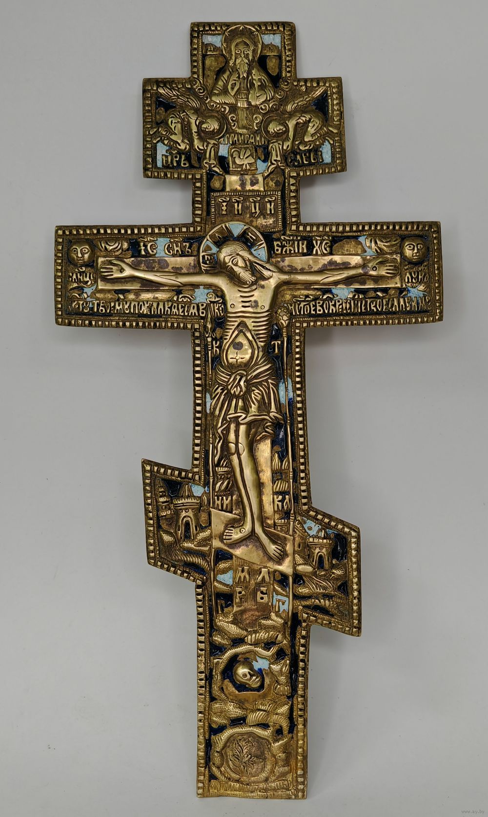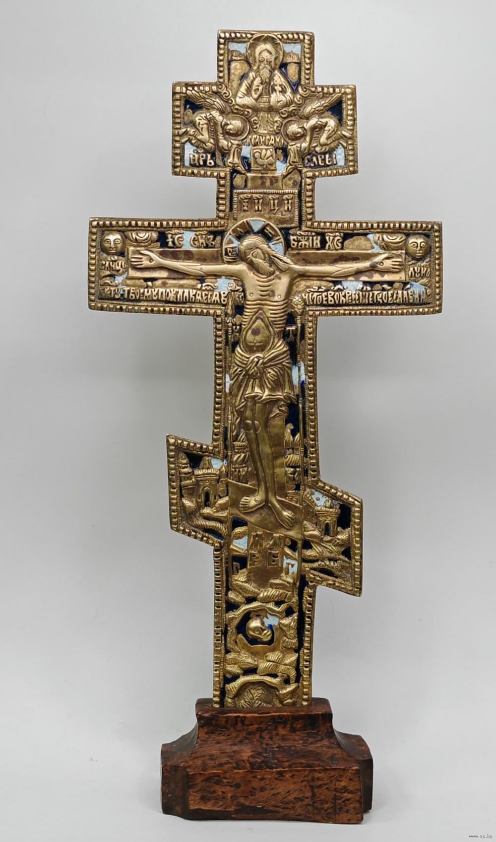 Большой Крест Распятие Иисус. Латунь. (34*17 см) подставка 19 век.