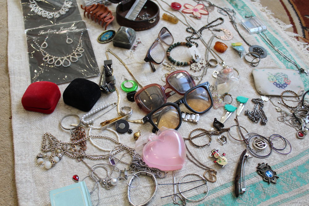 Более 100 единиц цепочек, серег, колец, брошей, подвесок, камней, запчастей для бус, винтажных очков, заколок