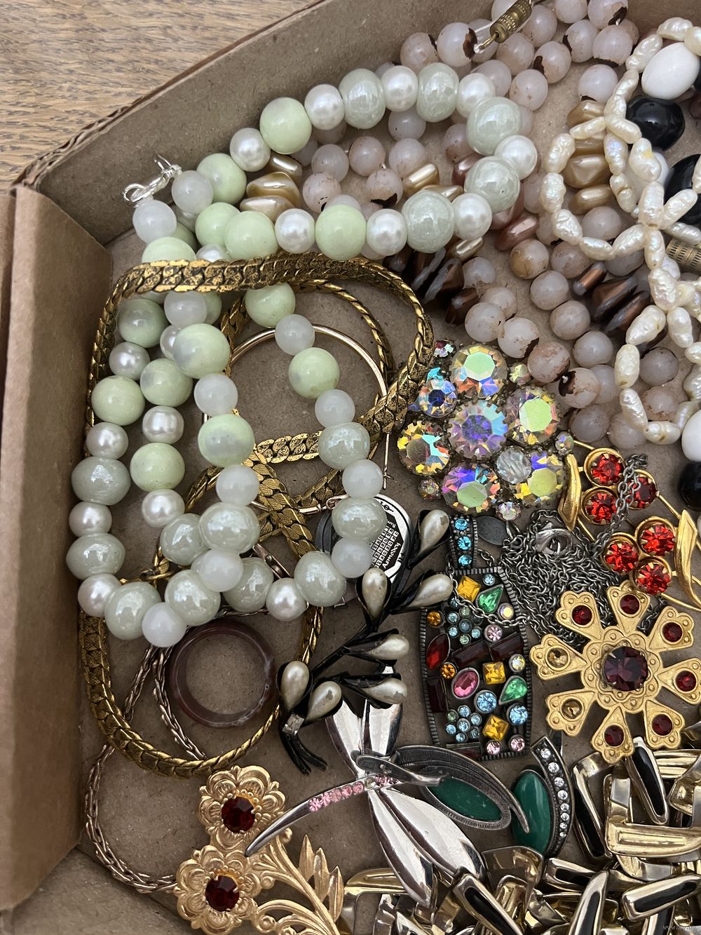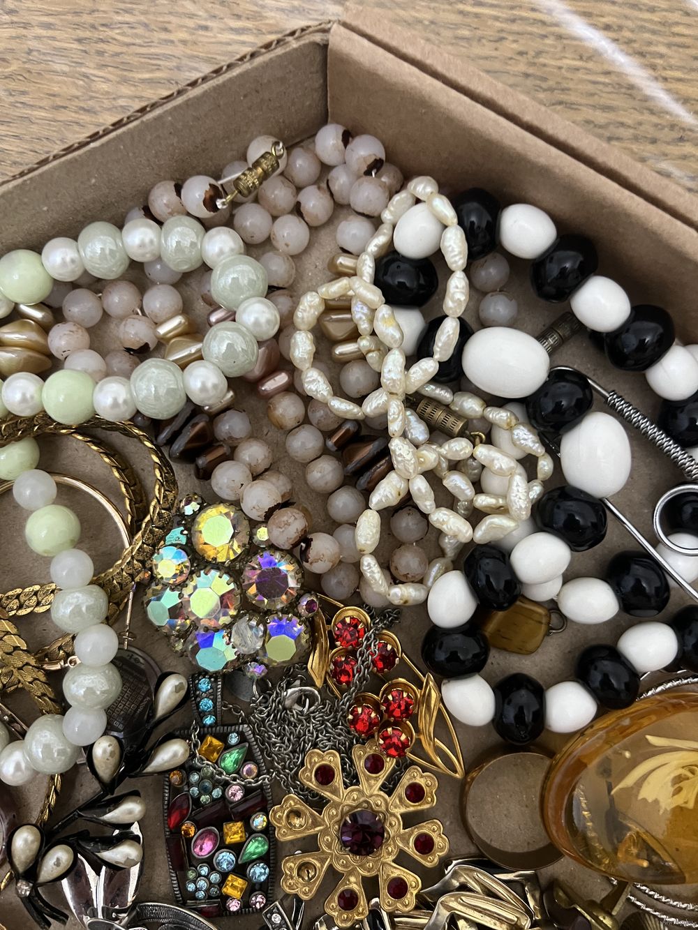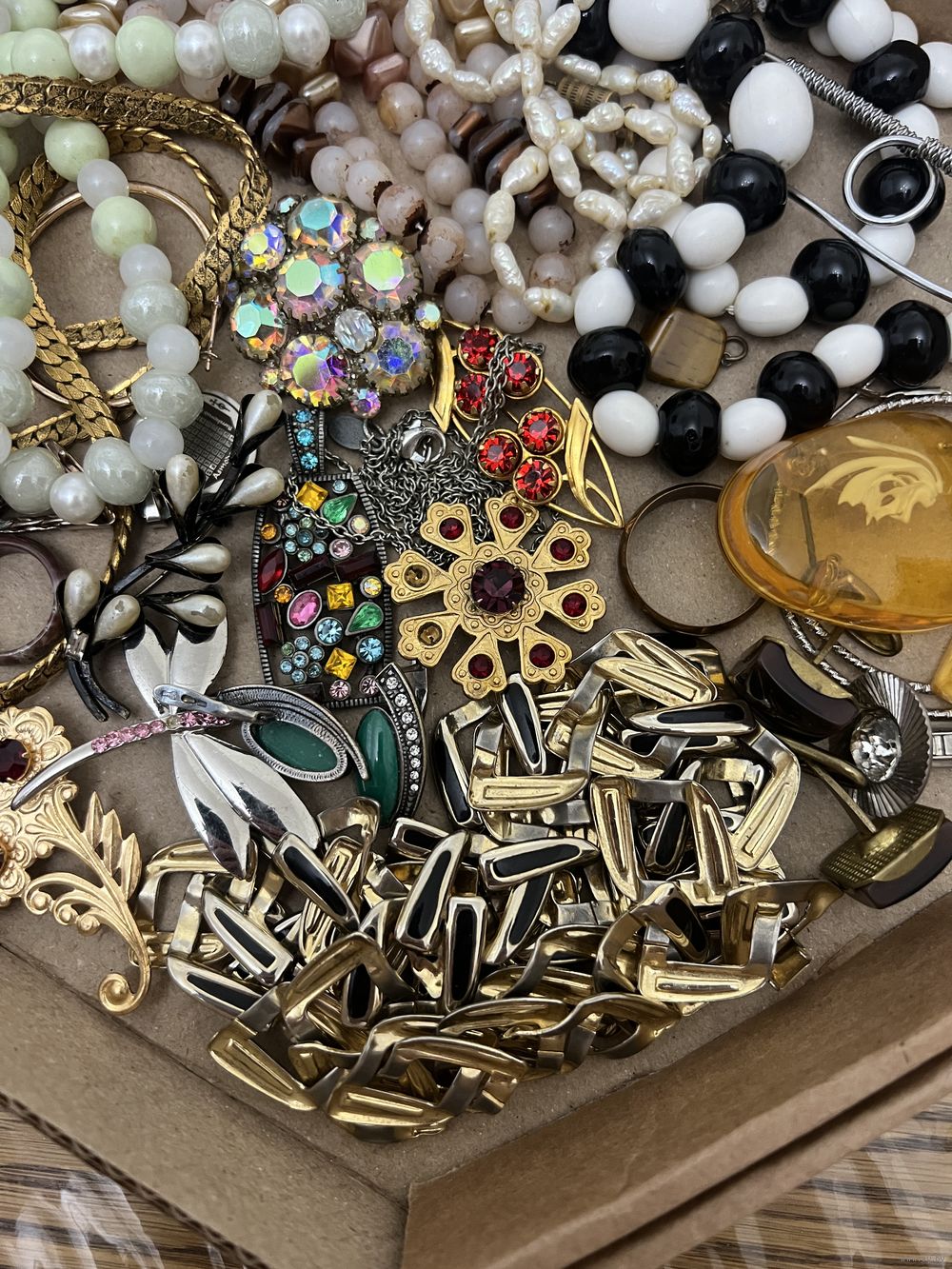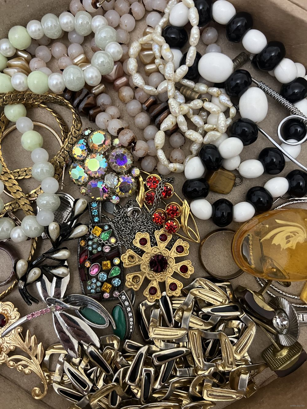 Большой лот винтажной бижутерии. Броши, бусы и много разных украшений, торги с рубля