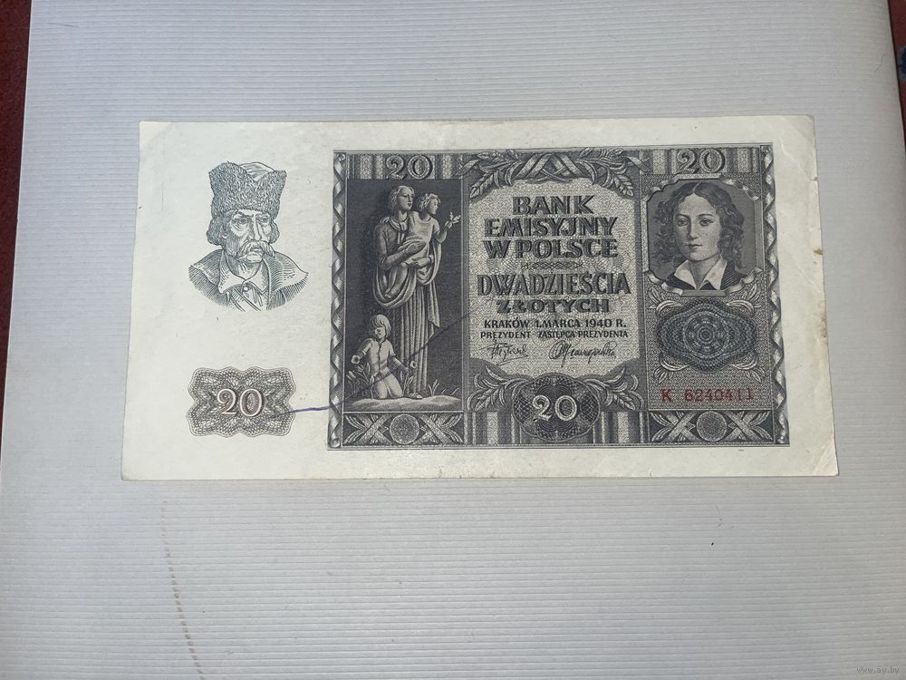 Бона 20 злотых 1940г Польша в хорошем состоянии