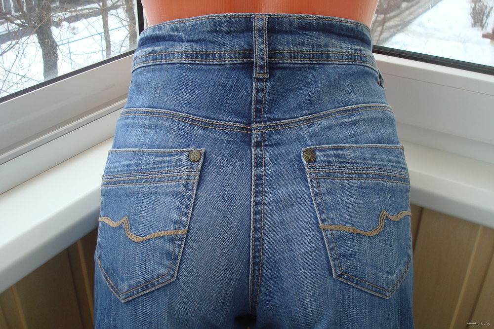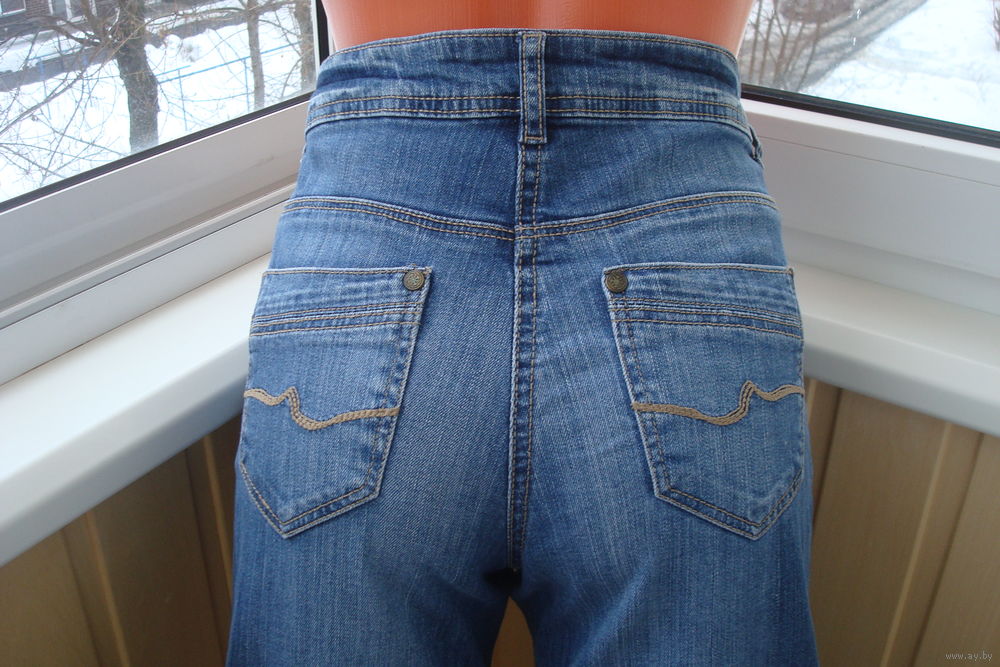 Высокая посадка, отлично сидят на фигуре. Идут на высокий рост, т.к. длина по боковому шву - 109см. Расклешение калошины внизу - 24см. ПОТ - 38-40см. ПОБ - 47 - 51см. Повторяю, ткань тянется за счёт добавки эластана.