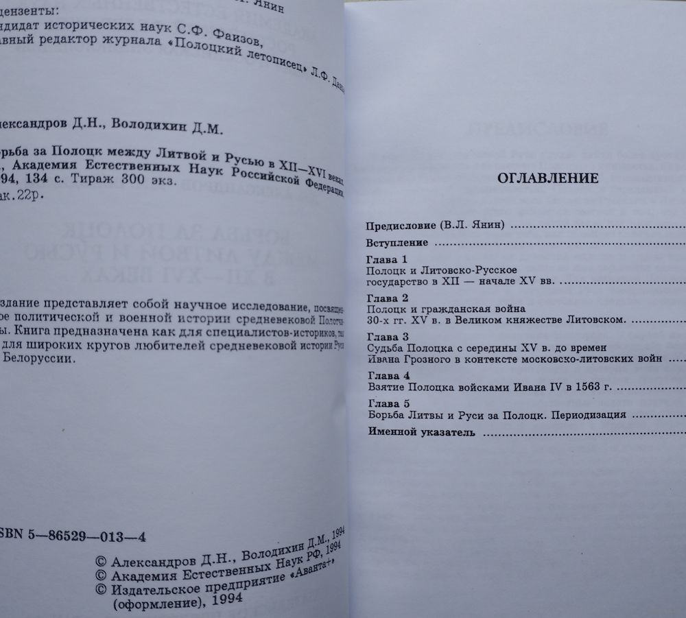 Большой формат. Тираж 300 экз. 136 стр. Ответственный редактор: академик В. Л. Янин. В истории средневековой Руси трудно найти более противоречивый сюжет, чем место в ее системе Полоцкого княжества. Связанный с остальной Русью общностью начальных судеб, исповеданием православия, языком и письменностью, Полоцк в переломный момент своего развития стал на долгие века частью не Русского, а Литовского государства. Парадокс этого феномена состоял в том, что Литва, поначалу зависимая от Полоцка, затем взяла над ним верх, но это могло случиться только после того, как полоцкое влияние преобразовало саму Литву: русский язык стал надолго ее государственным языком, а князья литовских династий сплошь и рядом отвергали язычество и принимали православие во имя торжества единодушия со своими славянскими подданными. Так возникло Литовско-Русское государство, которое в остальной Руси воспринималось как образование родственное, хотя и постоянно чреватое военной опасностью.