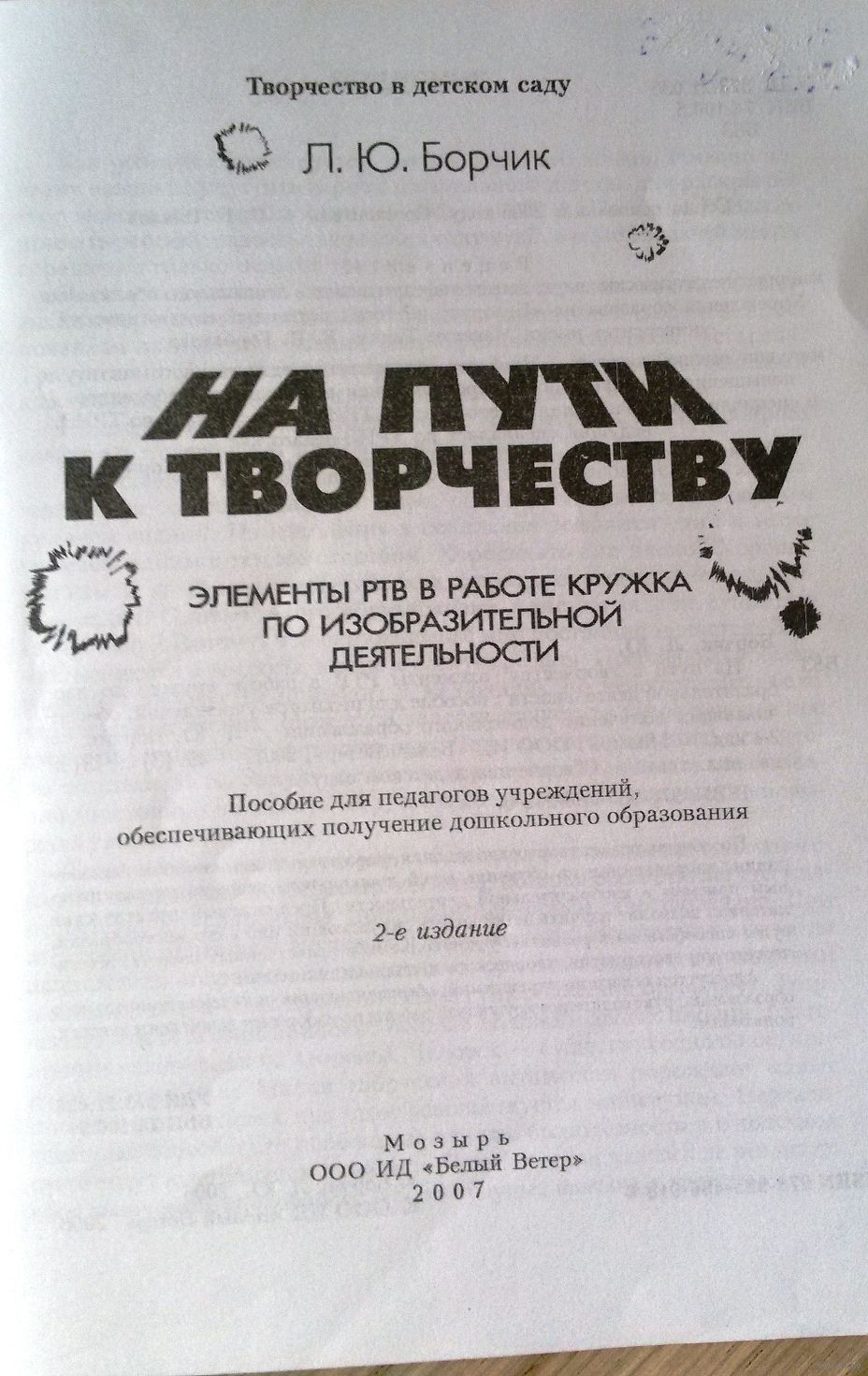 Борчик Л.Ю-На пути к творчеству-Элементы РТВ в работе кружка по изодеятельности, 2-е издание, Мозырь, ООО ИД «Белый Ветер», 2007г, с.49.