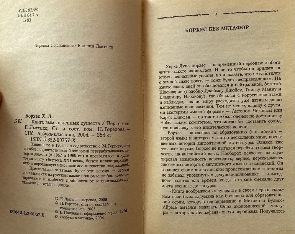 Хорхе Луис Борхес — один из самых популярных писателей ХХ века, во многом определивший облик современной литературы. Известна его склонность ко всевозможным антологиям, энциклопедиям и бестиариям. «Это таинственная любовь ко всему, существующему без нас», — писал он в стихотворении «При покупке энциклопедии». В 1950 году Борхес в соавторстве с Маргаритой Герреро выпустил «Учебник по фантастической зоологии», который после неоднократных дополнений обрел свое окончательное воплощение под названием «Книга вымышленных существ». Читатель найдет здесь множество странных, удивительных созданий, пришедших со страниц старинных книг и рожденных в воображении поэтов и философов, включая самого Борхеса. При этом книга построена в излюбленном стиле автора, когда граница между поэзией и прозой, вымыслом и реальностью истончается и исчезает, оставляя читателя лицом к лицу с подлинной литературой.