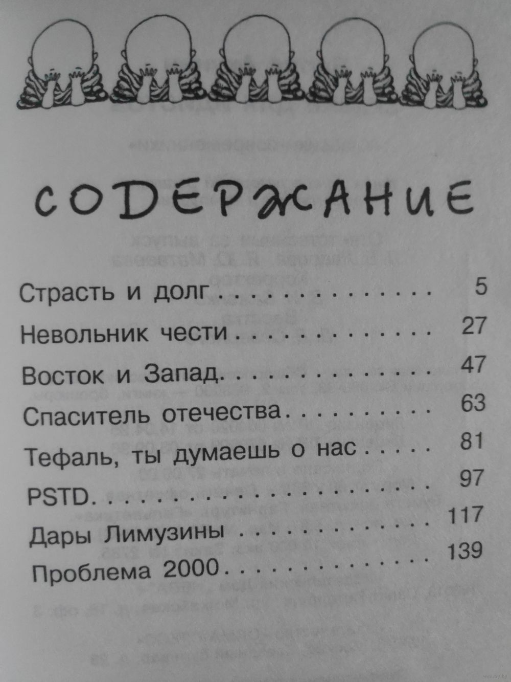 СОДЕРЖАНИЕ: Страсть и долг. Невольник чести. Восток и Запад. Спаситель отечества. Тефаль, ты думаешь о нас. PSTD. Дары Лимузины.