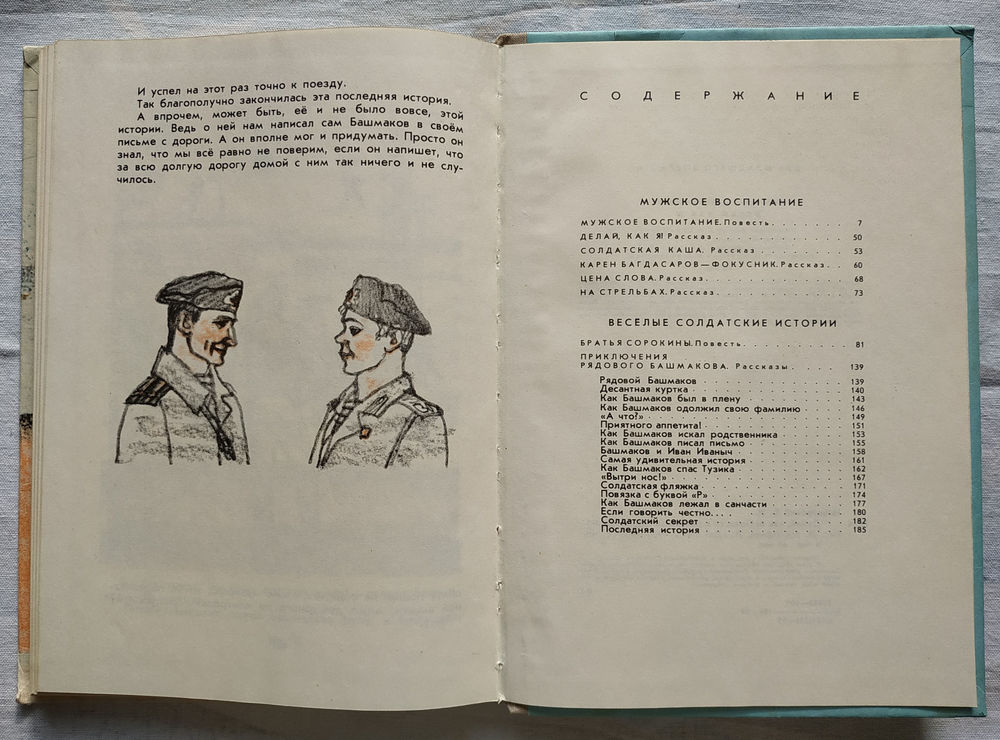 В этом сборнике объединены повести «Мужское воспитание», «Братья Сорокины», цикл рассказов «Приключения рядового Башмакова» и другие. В них автор с улыбкой говорит о новобранцах, рассказывает младшим школьникам, как важно стать умелым и храбрым солдатом.