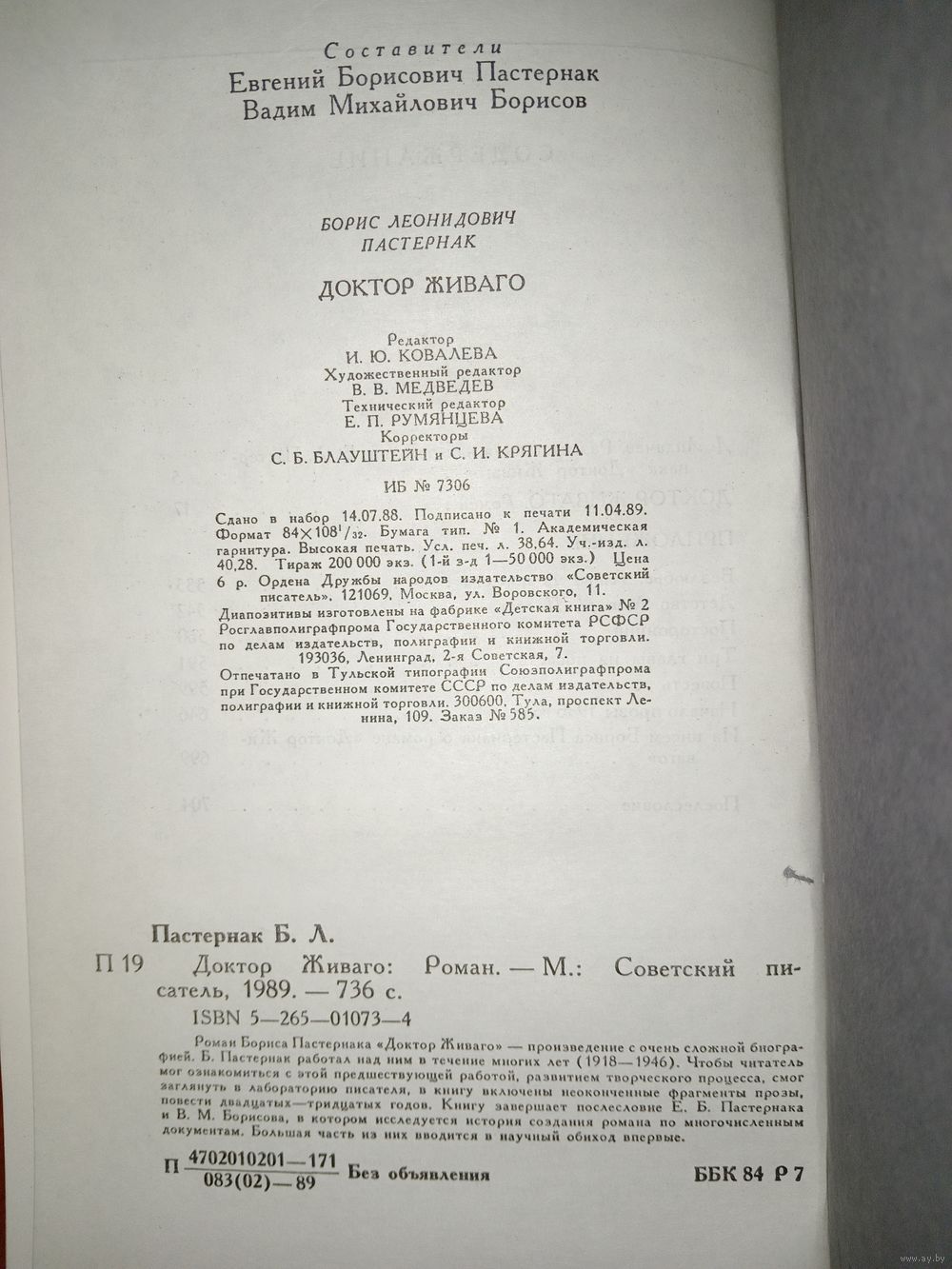 Москва, "Советский писатель", 1989 г.