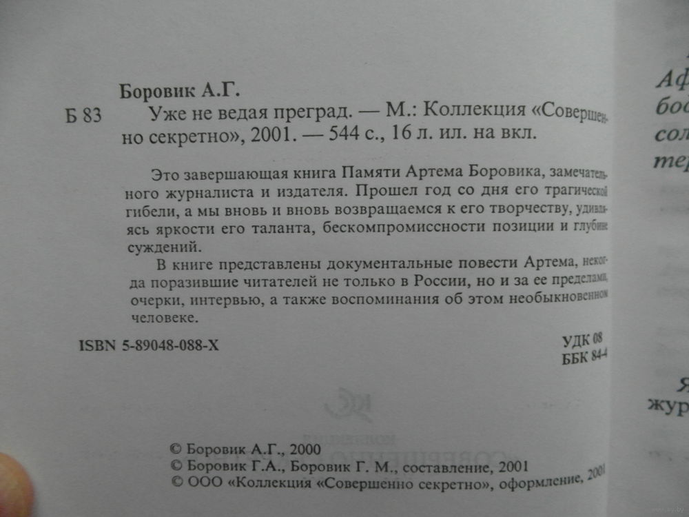 Книга памяти Артема Боровика - замечательного журналиста и издателя. В книге представлены документальные повести Артема, некогда поразившие читателей не только в России, но и за ее пределами, очерки, интервью, а также воспоминания об этом необыкновенном человеке.