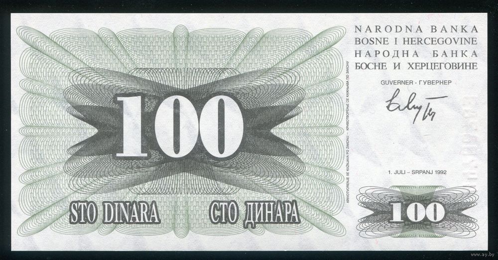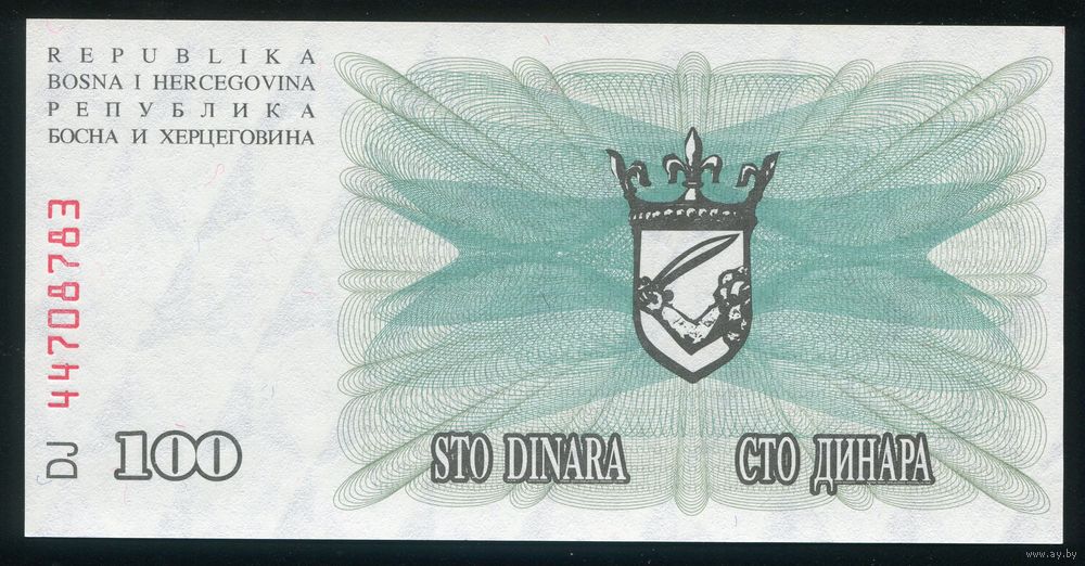 Босния и Герцеговина 100 динар 1992 г. P13. Серия DJ. UNC