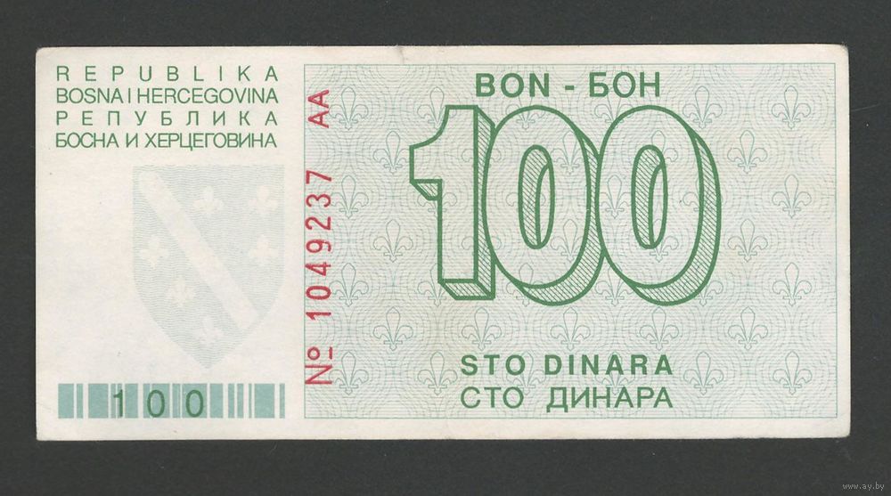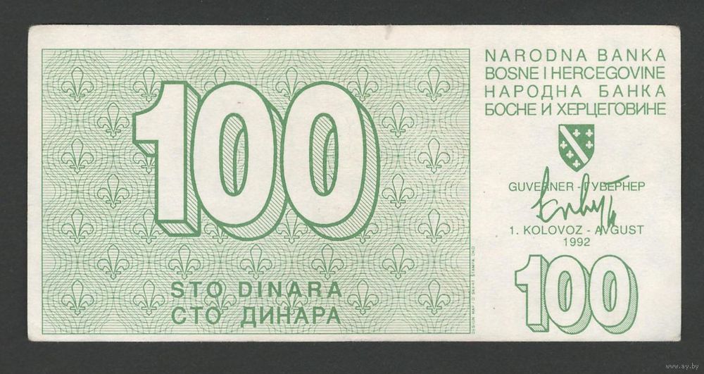 Босния и Герцеговина 100 динар 1992 года. Тип Р-24. Состояние XF