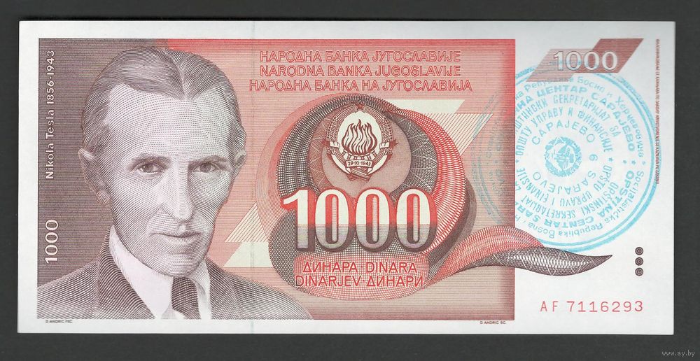 Босния и Герцеговина 1000 динар 1990 года. Тип Р-2. Состояние UNC