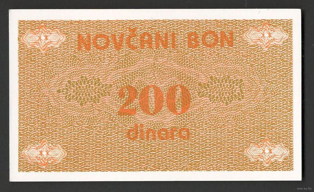 Босния и Герцеговина 200 динар 1992 года. Надпечатка TRAVNIK. Тип Р-48a. Состояние UNC! (2)