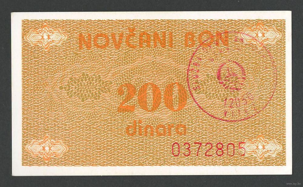 Босния и Герцеговина 200 динар 1992 года. Надпечатка VITEZ. Тип Р-48c. Состояние UNC!