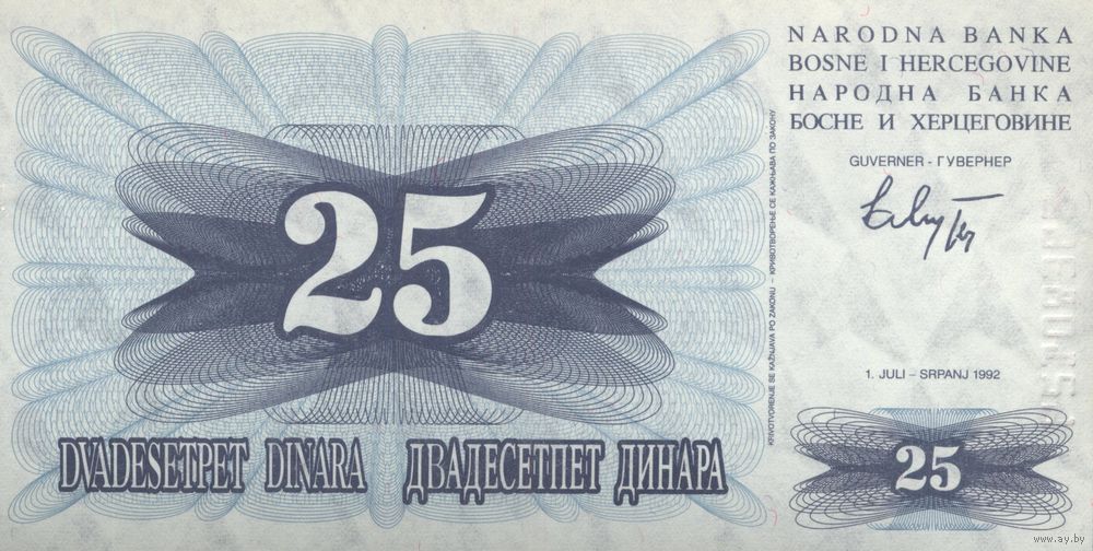 Босния и Герцеговина 25 Динар 1992 UNС П1-382