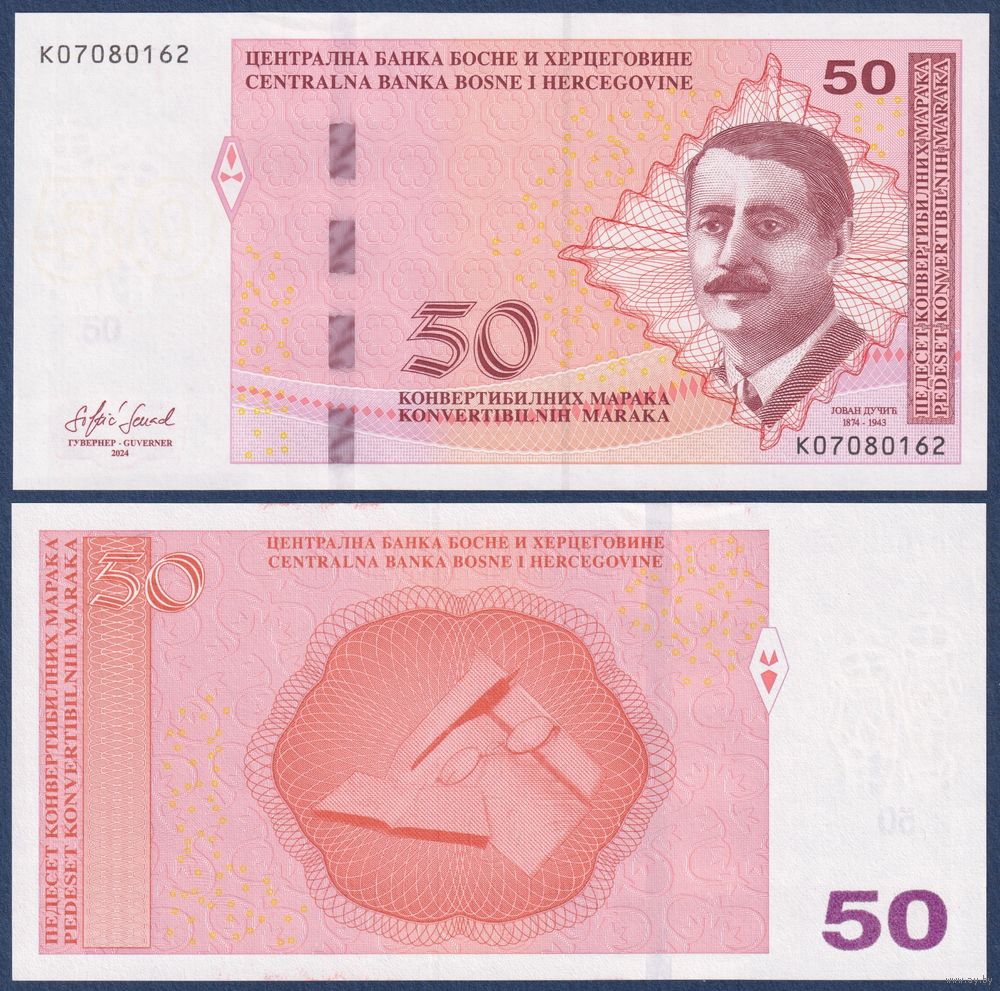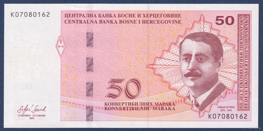 Босния и Герцеговина, 50 конвертируемых марок 2024 г., P-85 (K, поэт Йован Дучич), UNC