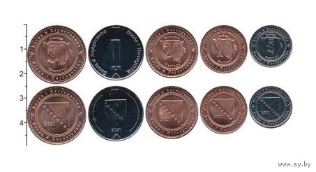 Босния и Герцеговина набор монет 5, 10, 20, 50 феннингов, 1 марка, UNC.