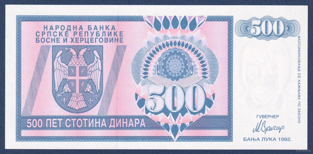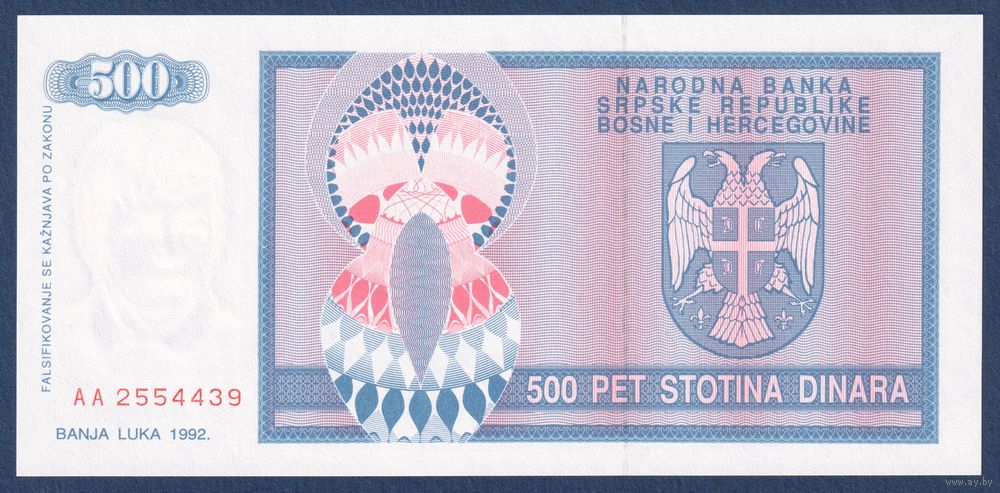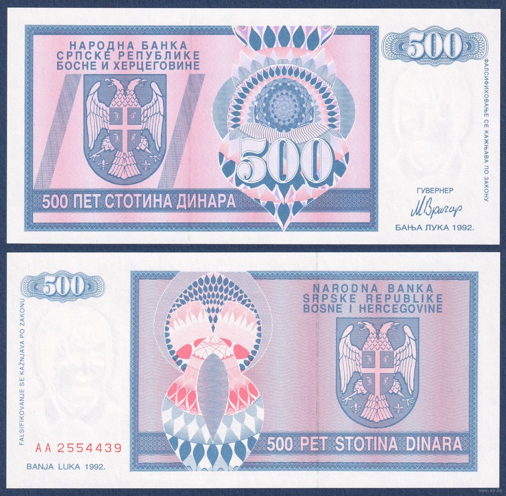 Босния и Герцеговина (Республика Сербская), 500 динаров 1992 г, P-136 (AA), UNC