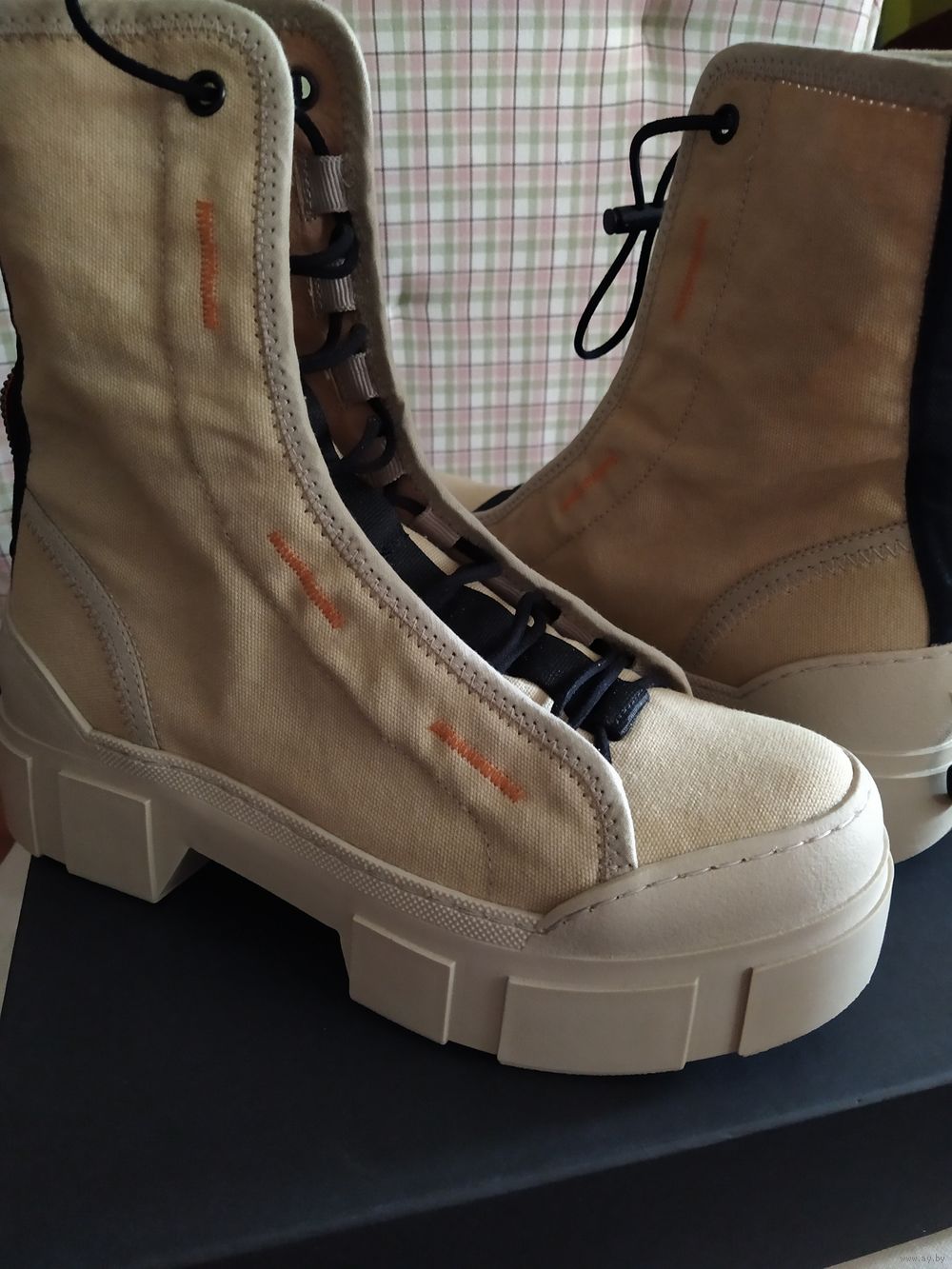 Массивные ботинки VIC MATIE из прочного текстиля бежевого цвета с контрастной отделкой,