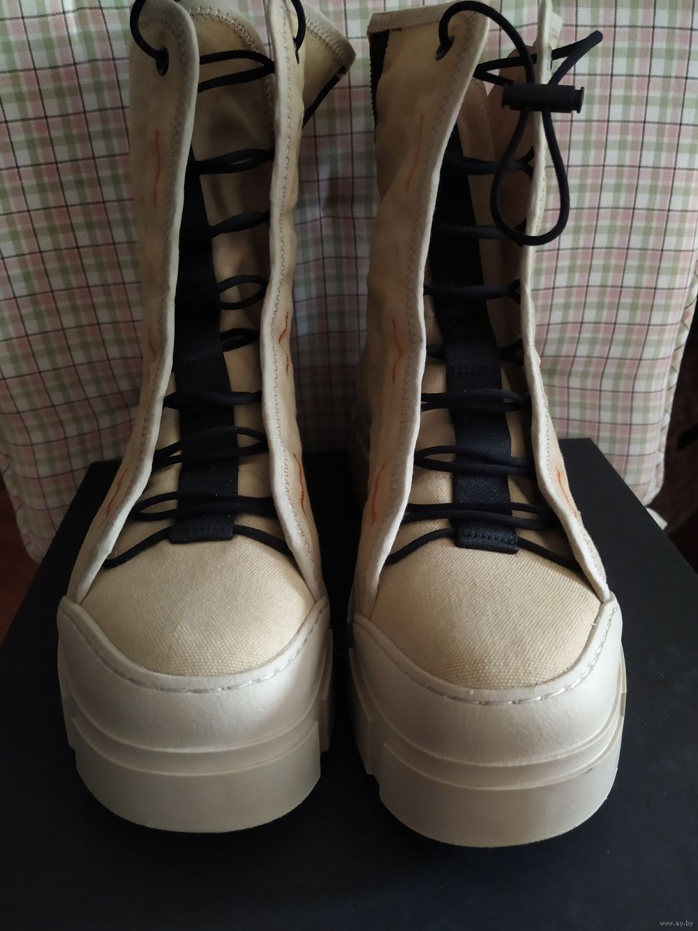 Массивные ботинки VIC MATIE из прочного текстиля бежевого цвета с контрастной отделкой,