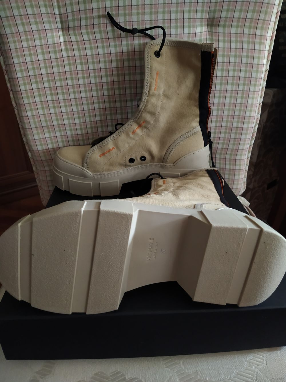 Массивные ботинки VIC MATIE из прочного текстиля бежевого цвета с контрастной отделкой,