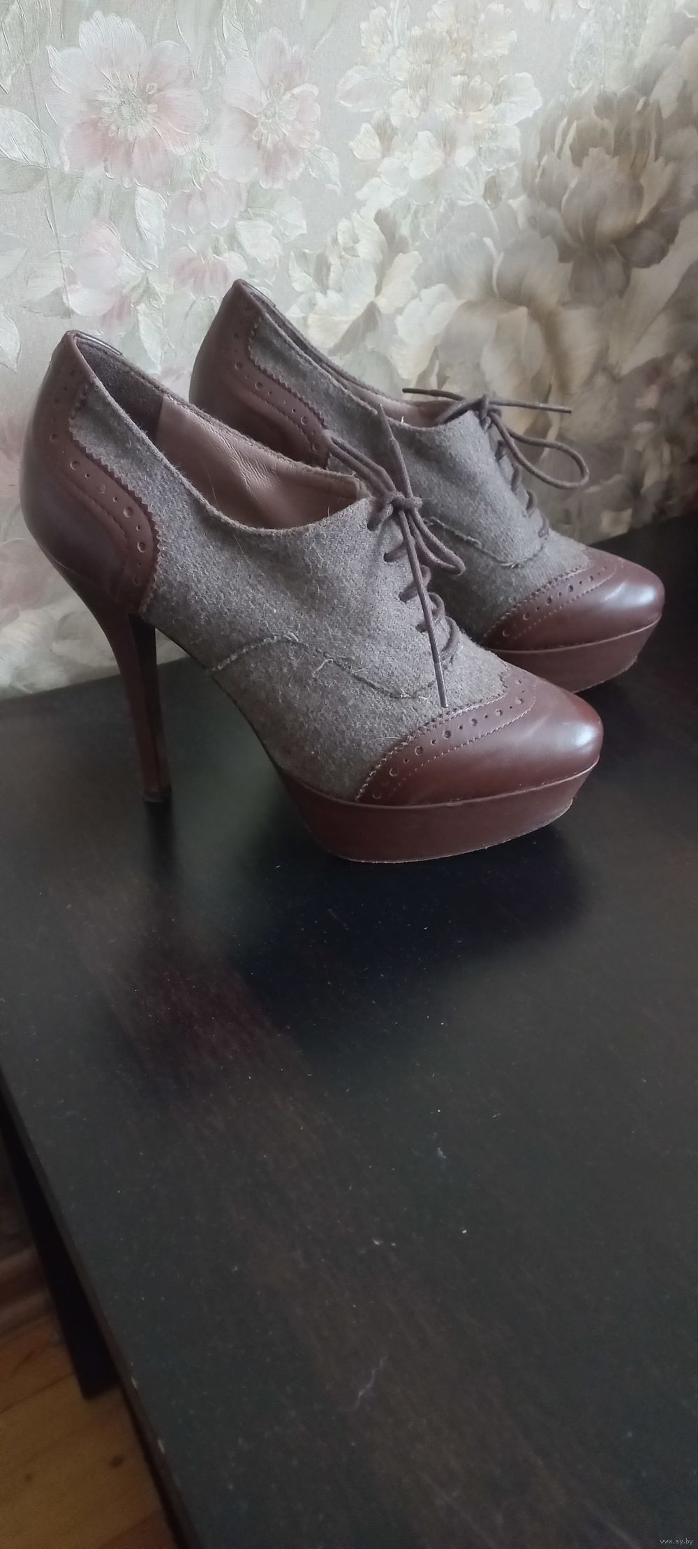 | Ботинки несколько раз бу, высокий каблук, можно на 37, и 36. Нога узкая. | |