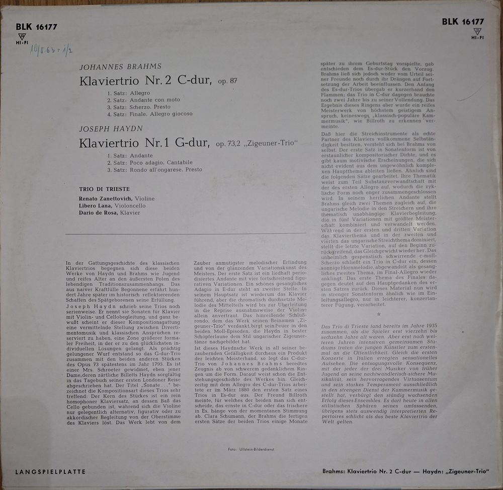 Brahms / Haydn, Trio Di Trieste – Klaviertrio Nr. 2 C-Dur Op. 87 / Klaviertrio Nr. 1 G-Dur Op. 73, 2 "Zigeunertrio"