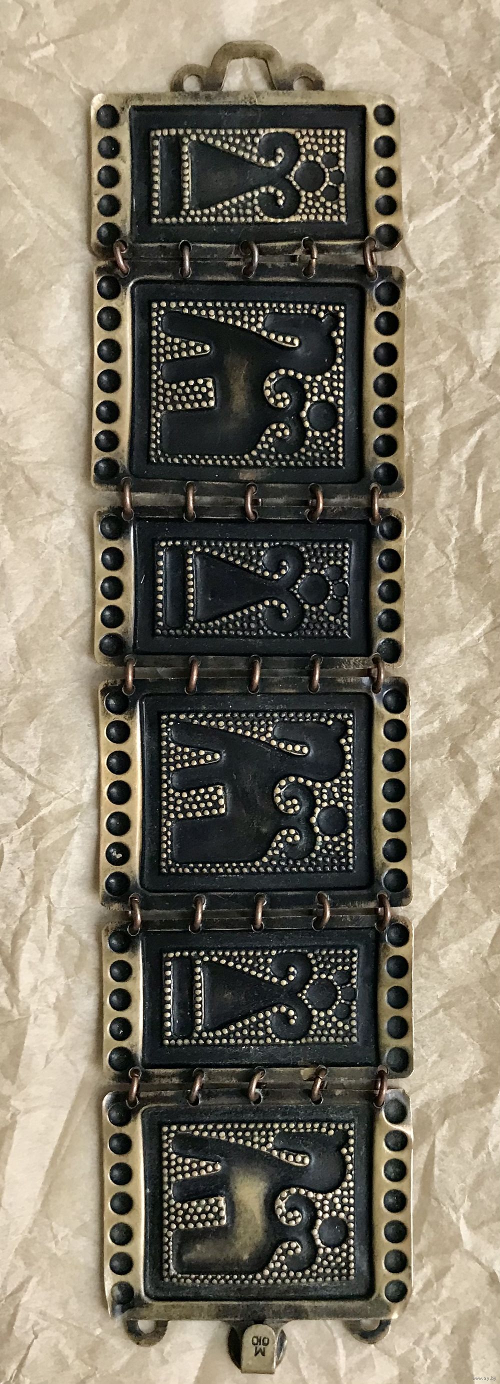 Крупный винтажный браслет из латуни. Сделан в период СССР в мастерской «Одесский ювелир». Стоит клеймо МОЮ. Длина браслета 19,5см., высота 4,5см. Состояние хорошее. Редкий экземпляр.