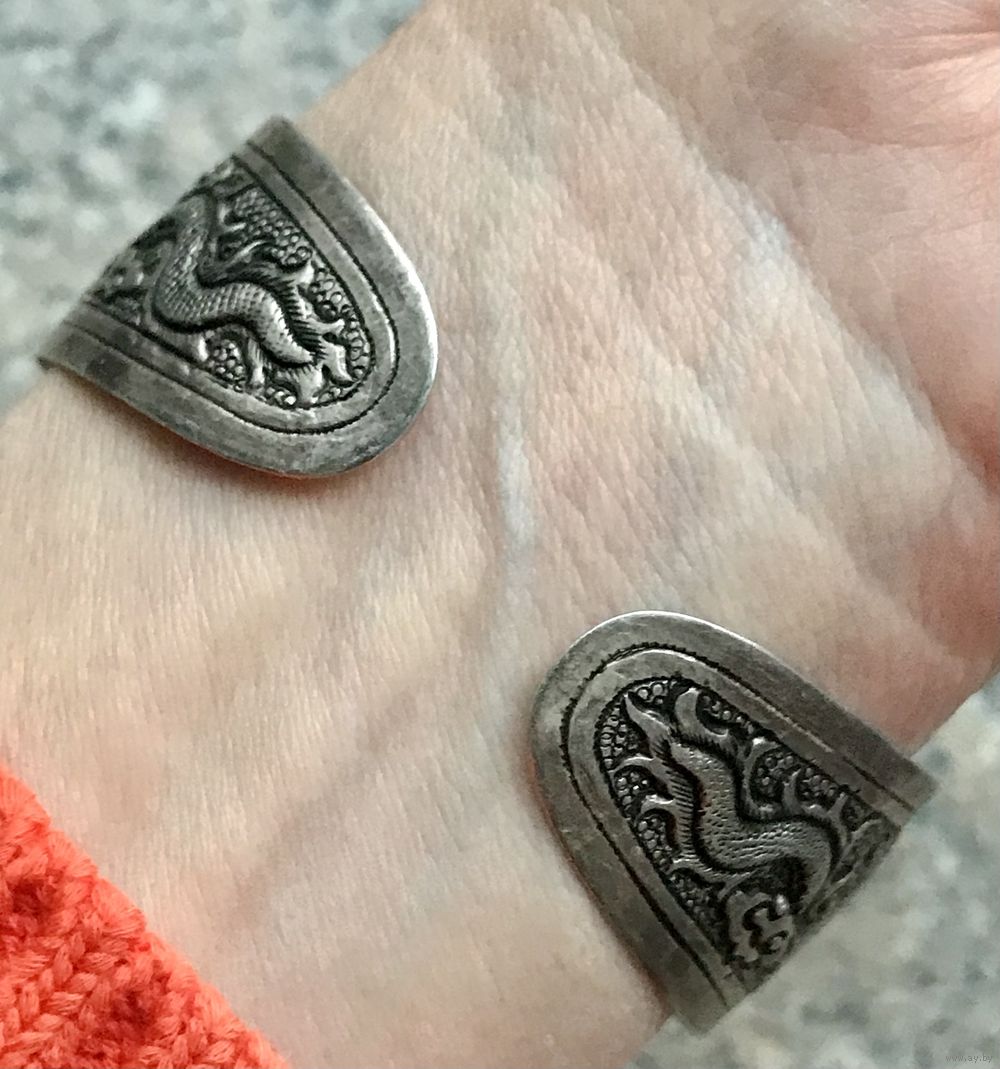 Винтажный браслет из серебра 999пр., высота центральной части 2,5см., вес 20гр., состояние хорошее.