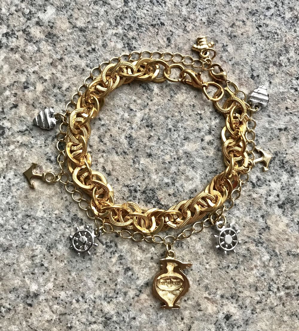 Лот из двух браслетов компаньонов, один из которых юв. бренда Женави. Длина максимальная браслета с шармами 23см., другого 19см. Состояние хорошее.