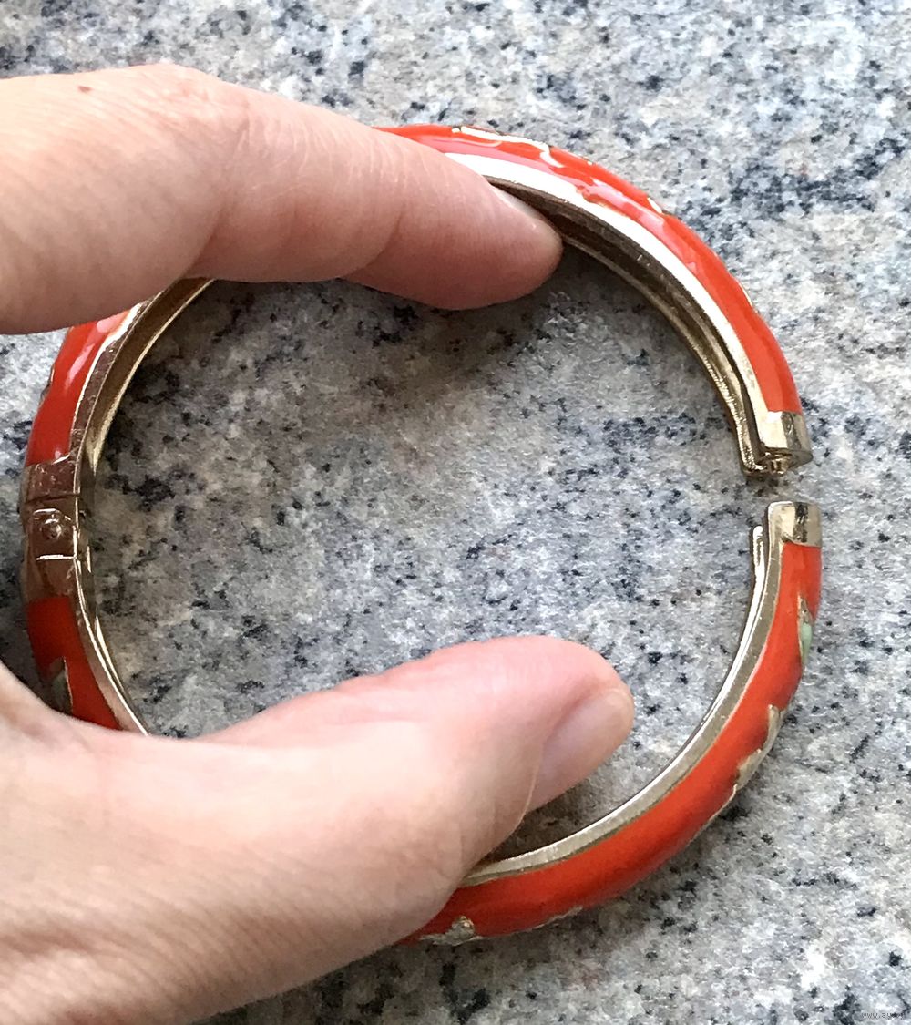 Винтажные браслеты - clamper от Jiu Long Xing. Выполнены из металла золотого тона. Декорированы цветной эмалью. Высота каждого браслета 0,9см., вн. диаметр 6см. Маркированы. Состояние хорошее.