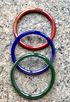 Яркие браслеты из цветного стекла с перламутровым блеском. Высота каждого 0,5см., вн.диаметр 6,5см. Состояние хорошее.