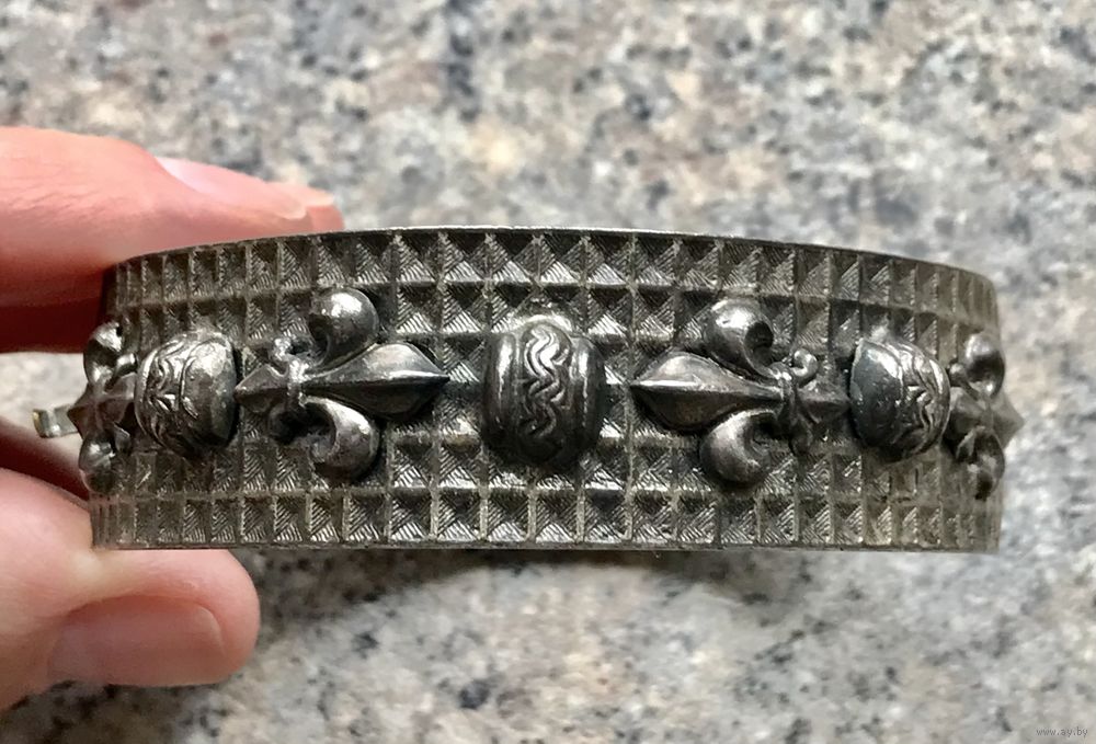 Браслет из латуни с серебрением, Чехословакия 1960-е гг. Высота 2см., вн. диаметр 6,5см. Состояние хорошее.