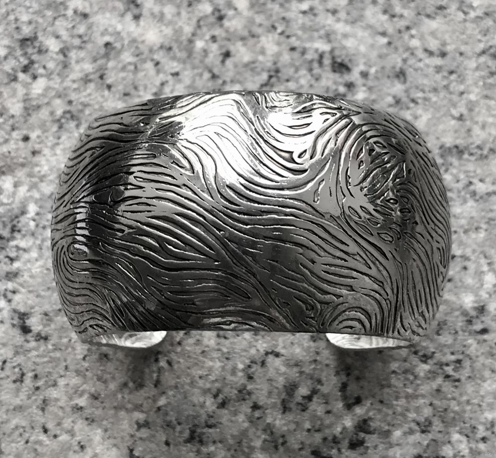 Крупный браслет из металла серебристого тона. Высота 3,5см., подойдёт на узкое запястье. Состояние хорошее.